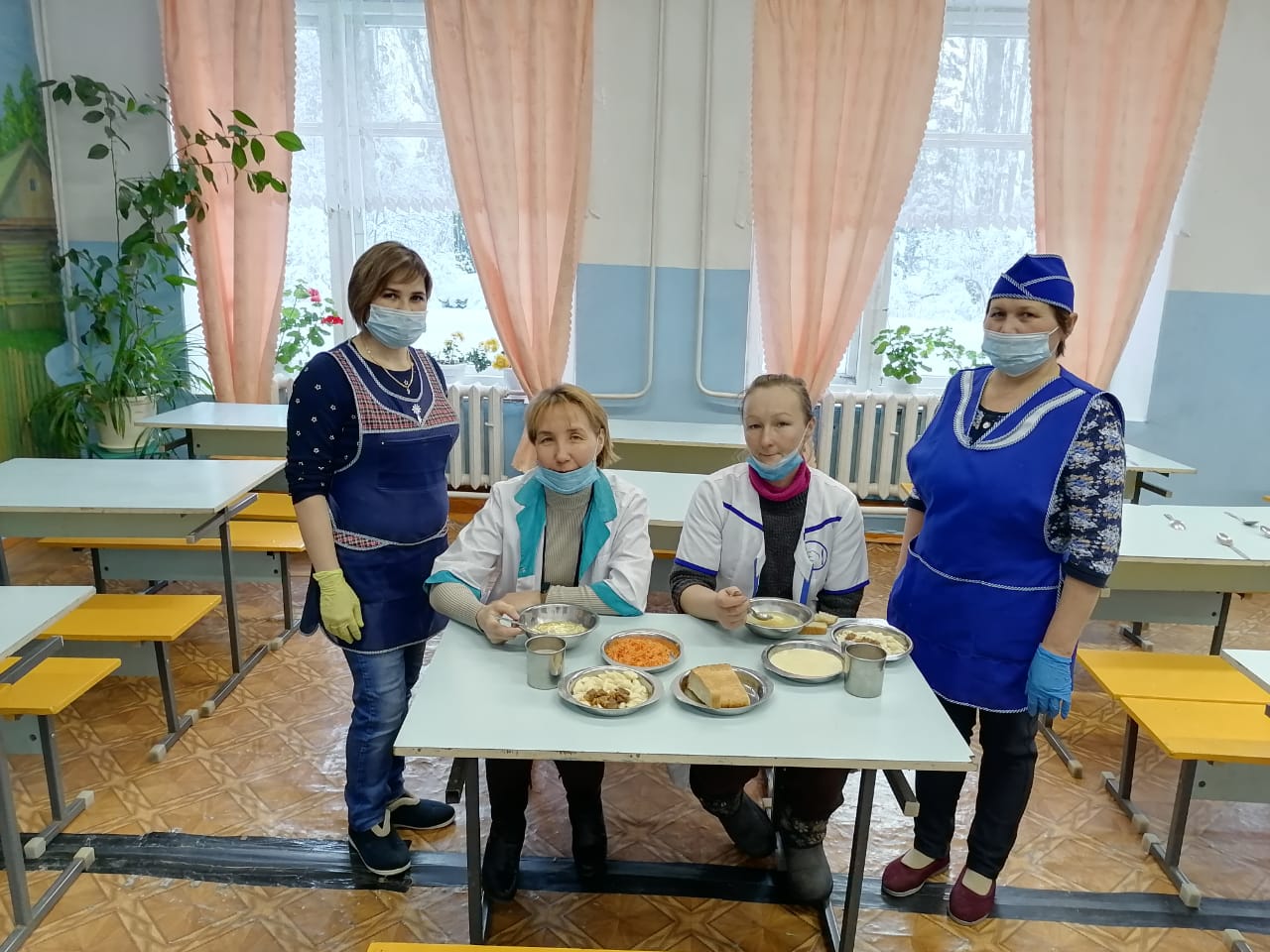 20 декабря 2021 года члены комиссии в составе Янгильдиной Т. П. - ЗДВР, Ямакаевой Р. В. - завхоза школы, Ямакаевой И. П. - повара школы и с приглашением родителя Сайпашевой Е. И. провели в школе контрольную проверку соответствия приготовленных блюд, утверждённому меню, качества и норм выдачи завтраков и обедов.