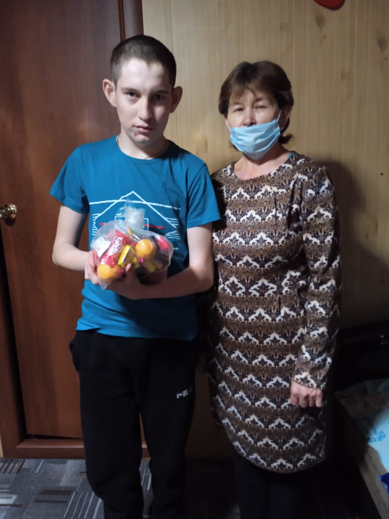 Учитель Яндугушева С. А. вручила подарок от школы ученику 9 класса с ОВЗ, обучающемуся на дому, Ярминкину Сергею.